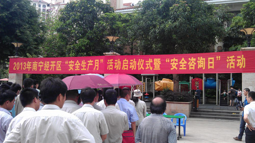 (本网讯)在南宁市经开区安监局组织和指导下,5月30日至6月30日,为期一个月的“安全生产月”活动拉开序幕,为配合经开区安监局开展“安全生产月”活动,我司专门成立“安全生产月”活动指导委员会,以“强化安全基础,推动安全发展”为主题,开展形式多样,内容丰富的“安全生产月”活动,活动内容有: